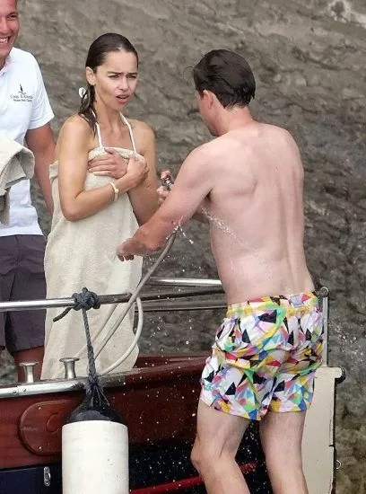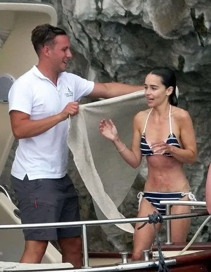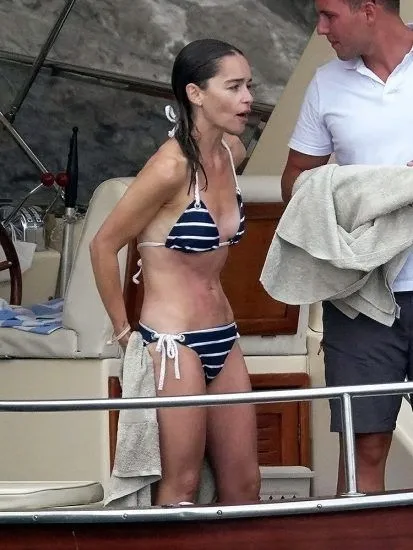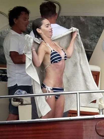 Näitlejat Emilia Clarket näeb koos sõpradega Itaalias suvepuhkuse ajal. Inglise kaunitar nautis meessoost sõpradega laevareisi ja käis triibulistes bikiinides ujumas. Grupp külastas paate väljas olles mõnda koobast, nautides suve Itaalias! Emilia Clarke kandis seksikat bikiini ja näitas palju nahka!