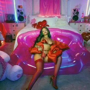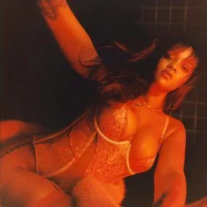 Kas olete näinud uusi Rihanna pesupilte, mida ta tegi oma Fenty Savage liinikampaania jaoks? Kui te seda ei teinud, vaadake neid kõiki allpool! Pahatüdruk Rihanna näitas oma suurt tagumikku, samuti täiusliku kujuga tissid. Ta näeb kena välja, poseerides roosas seksikas pesu, läbipaistvate rinnahoidjate ja korsettidega! Ta teeb mind kõvaks iga kord, kui näen, kuidas ta rinnakas kõverad on, samal ajal tahaksin ma teda keppida!