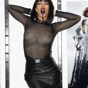 Meil on galerii uusimast Rihanna alastist, seksikast ja piltidest läbi vaadatud. Tema suured tissid ja augustatud nibud on siin võrgusilma musta topi ja nahast musta seeliku all! Ta osales Pariisi moenädalal ja näitas meile ka oma suurimat aardet! Räpane rind ja kõvad nibud, kõvad nagu mu riist! Inimesed, Rihanna pole üldse loll. Ta teeb kõike selleks otstarbeks. Rihannaga näeme piltidel Jessica Albat ja teisi RiRi häid kuulsusesõpru!